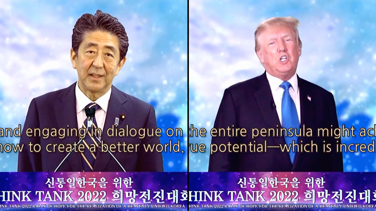 標題圖片:世界和平統一家庭聯合會(前統一教)之相關團體「天宙和平聯合」(UPF,臺灣稱「全球和平聯盟」),曾於2021年9月舉辦活動,時任日本首相的安倍晉三與美國總統川普以影片方式出席(UPF官網)