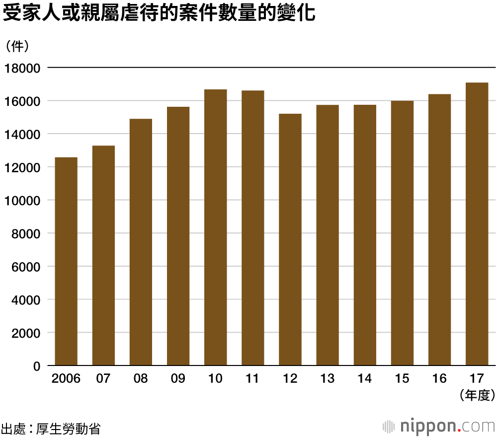 厚生勞動省的調查結果顯示,2017年針對老年人的虐待案件比上年增加4.2%,多達1萬7078件,為歷史新高。