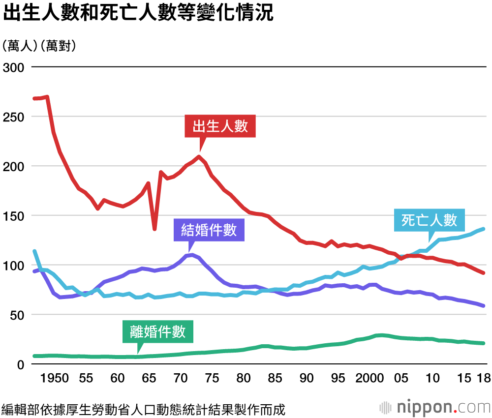 編輯部依據厚生勞動省人口動態統計結果製作而成