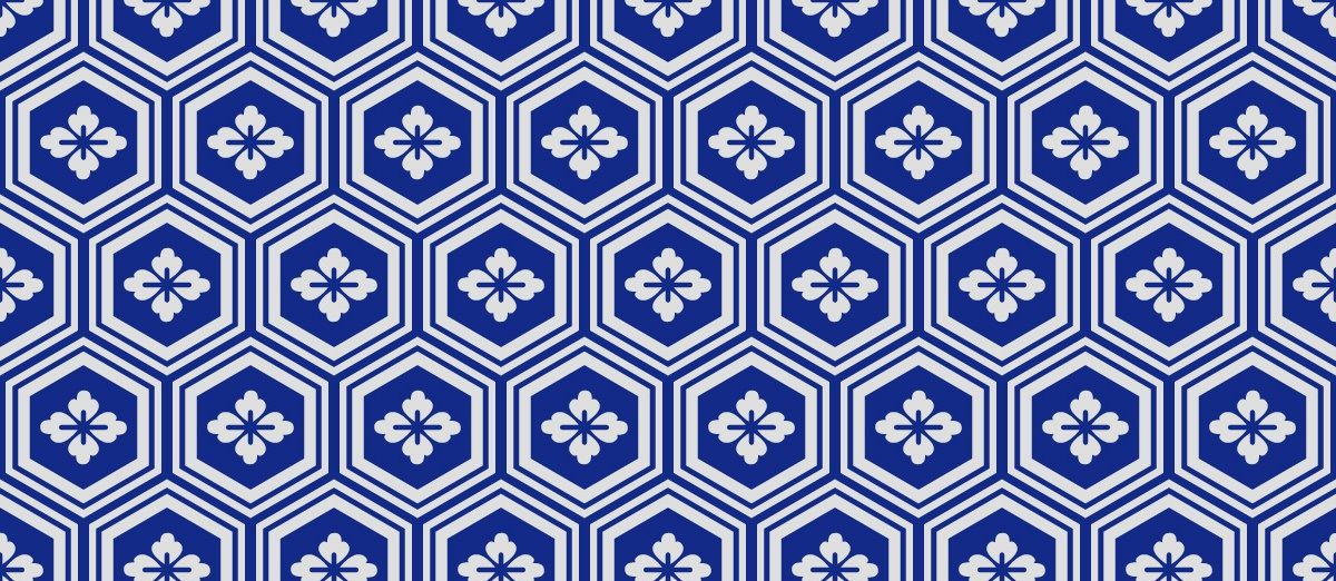 這個紋樣,來源於象徵長壽的烏龜的六邊形甲殼,並且,單純的龜甲圖案通過進一步發展,變化出在六邊形裡加上花紋的「龜甲花菱」、將三個龜甲組合在一起而成的「比沙門龜甲」等形式多樣的圖紋。