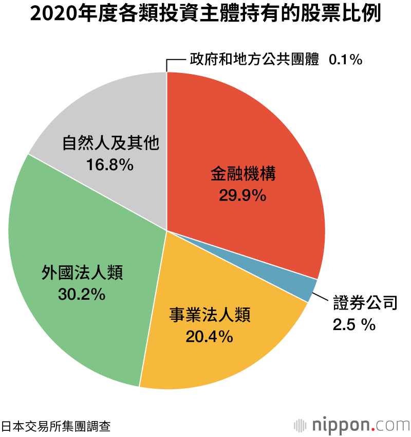 負責運營東京證券交易所等機構的日本交易所集團(JPX)近日公佈的2020年度持股份布情況調查資料顯示,截至2021年3月底,自然人股東數達到了5981萬人,同比成長308萬人,創下歷史最高記錄。
