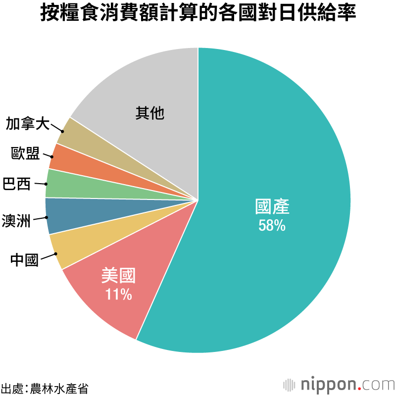 日本農林水產省的統計顯示,2022年按產值計算的日本糧食自給率同比下降5個百分點至58%,創歷史新低。儘管食品進口量和上一年基本相同,但由於國際糧食價格暴漲和飼料肥料價格上漲,進口額出現了大幅增加。政府提出了「2030年按產值計算的自給率達到75%」的目標,而目前存在多達17個百分點的差距。