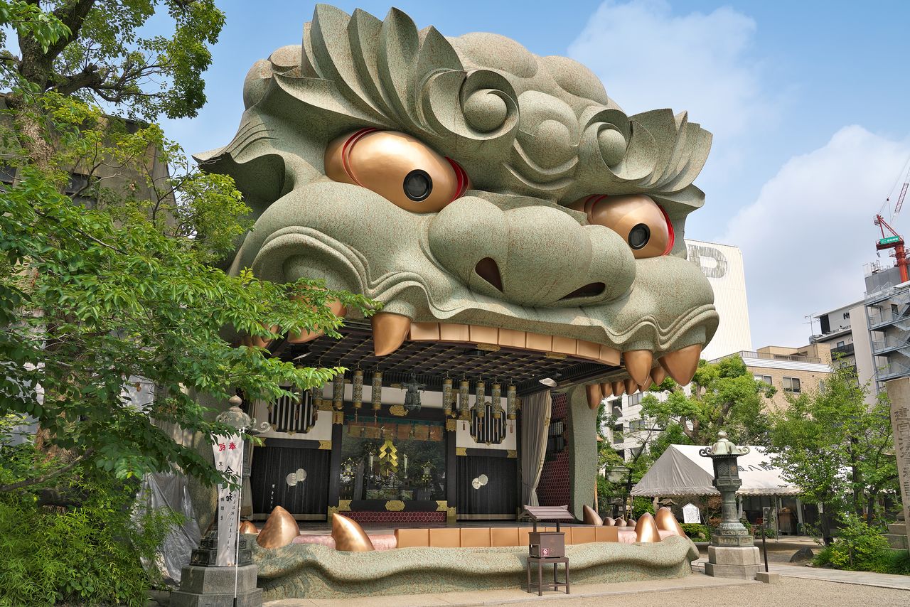 難波八阪神社。繪馬殿的外型是張著金牙大口的巨大獅子頭,非常惹人注目(PIXTA)