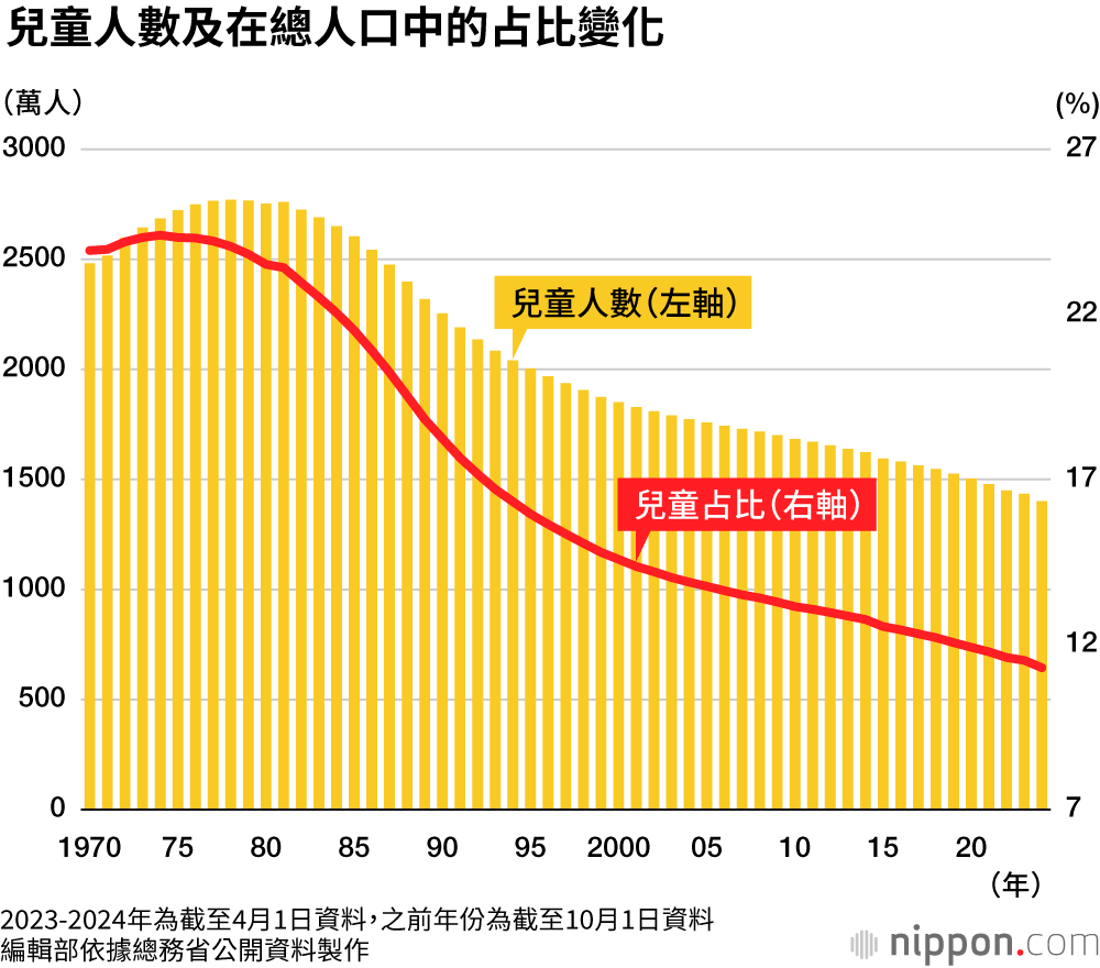 日本社會少子化問題持續加劇,兒童人數已連續43年減少,在總人口中的占比更是連續50年下降。