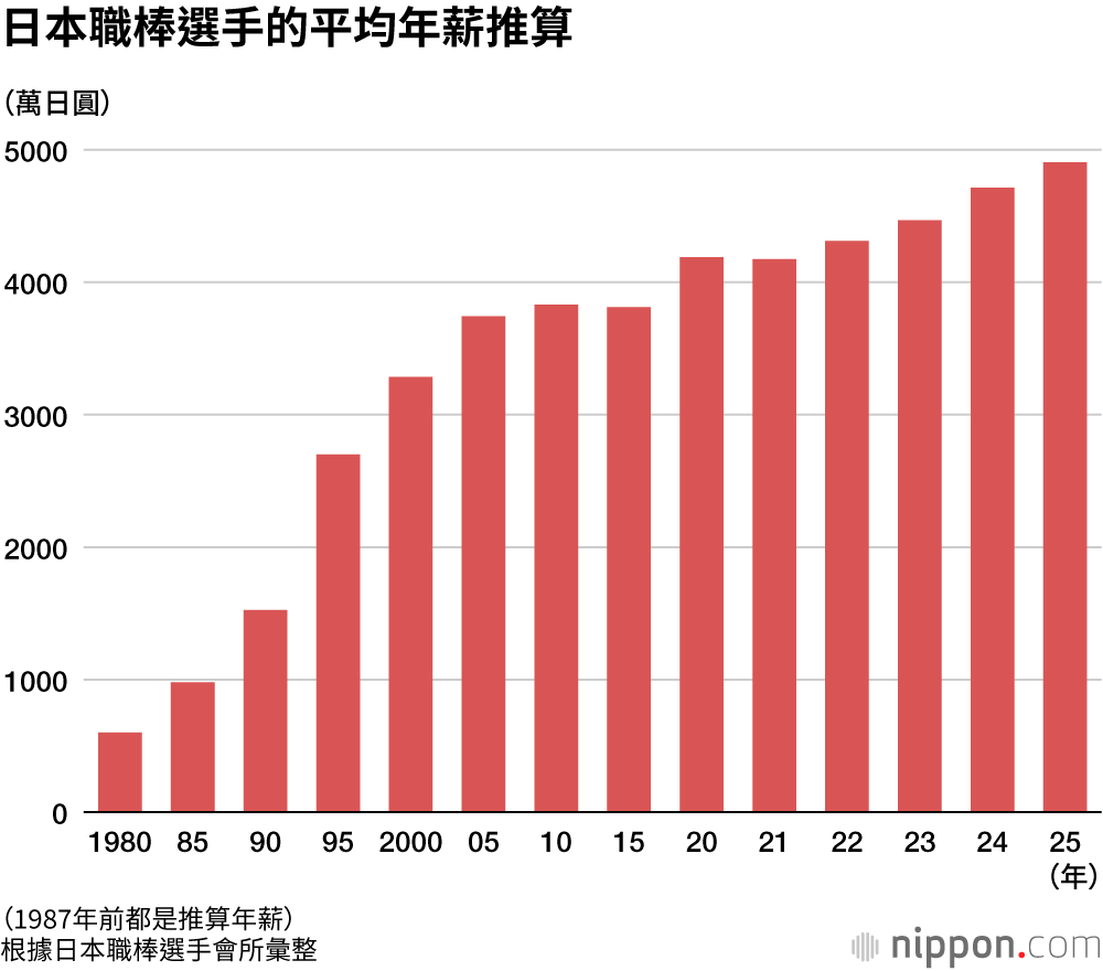 根據日本職業棒球選手會近日公布的2025年球季薪資調查結果,12支球團的登錄球員(排除外籍選手與非會員選手)共725人,其平均年薪為4905萬日圓。