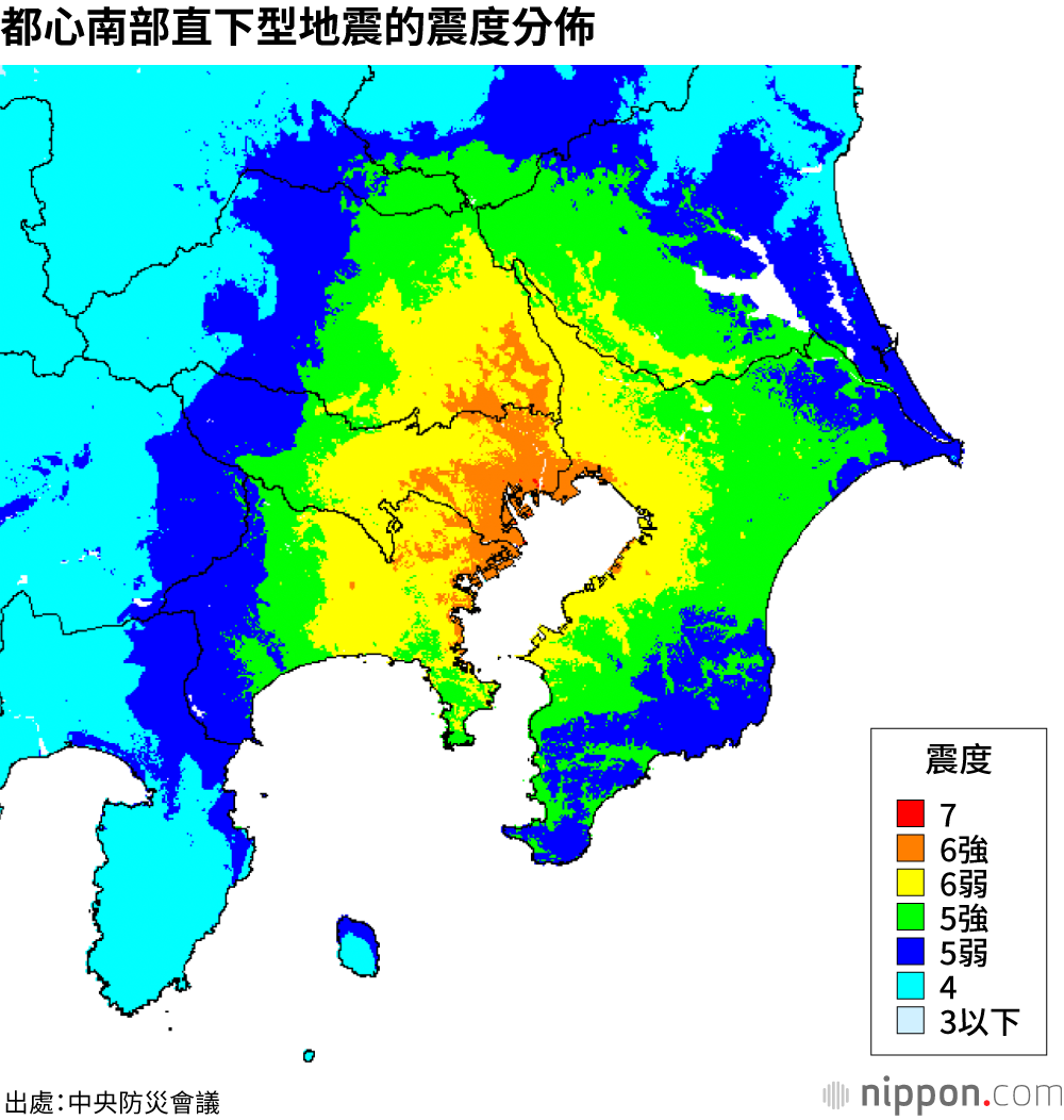 日本政府近日公佈了首都直下型地震最新災情預測。如果發生以東京都心南部為震源的芮氏規模7級地震,廣大區域將遭遇震度6強以上的劇烈震動,最嚴重的情況下,將導致以東京、神奈川、埼玉和千葉4都縣為中心的大約1萬8000人死亡,經濟損失預計高達約83兆日圓。