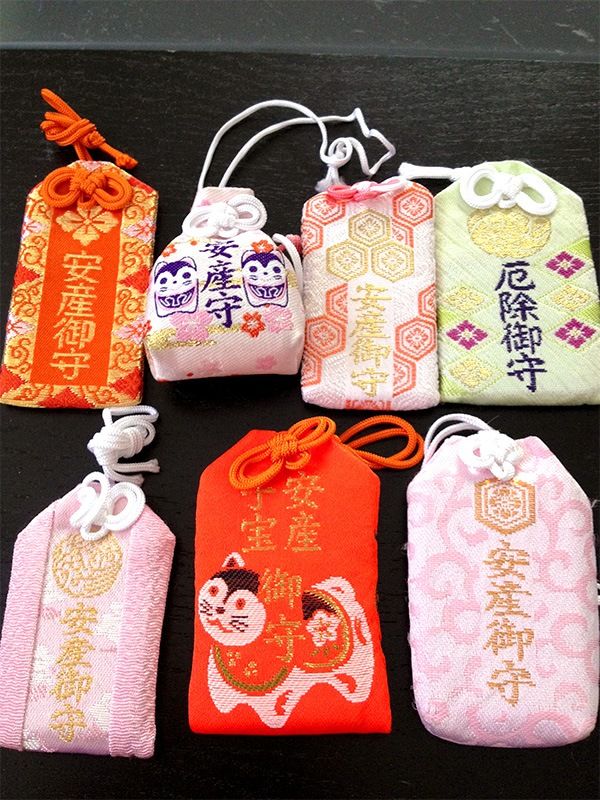 東京都的水天宮自古就因保佑產婦平安生產而聞名。由於狗產子多且生產順利,非常吉利,所以就有了一種說法,稱懷孕5個月的孕婦在戌日(十二地支中的戌和狗對應)去神社祭拜,就能順利生產。而平安分娩護身符又以水天宮最為有名。