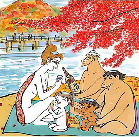 小島功為日本酒製造商黃櫻繪製的第二代河童。第一代河童的作者為清水昆(黃櫻)