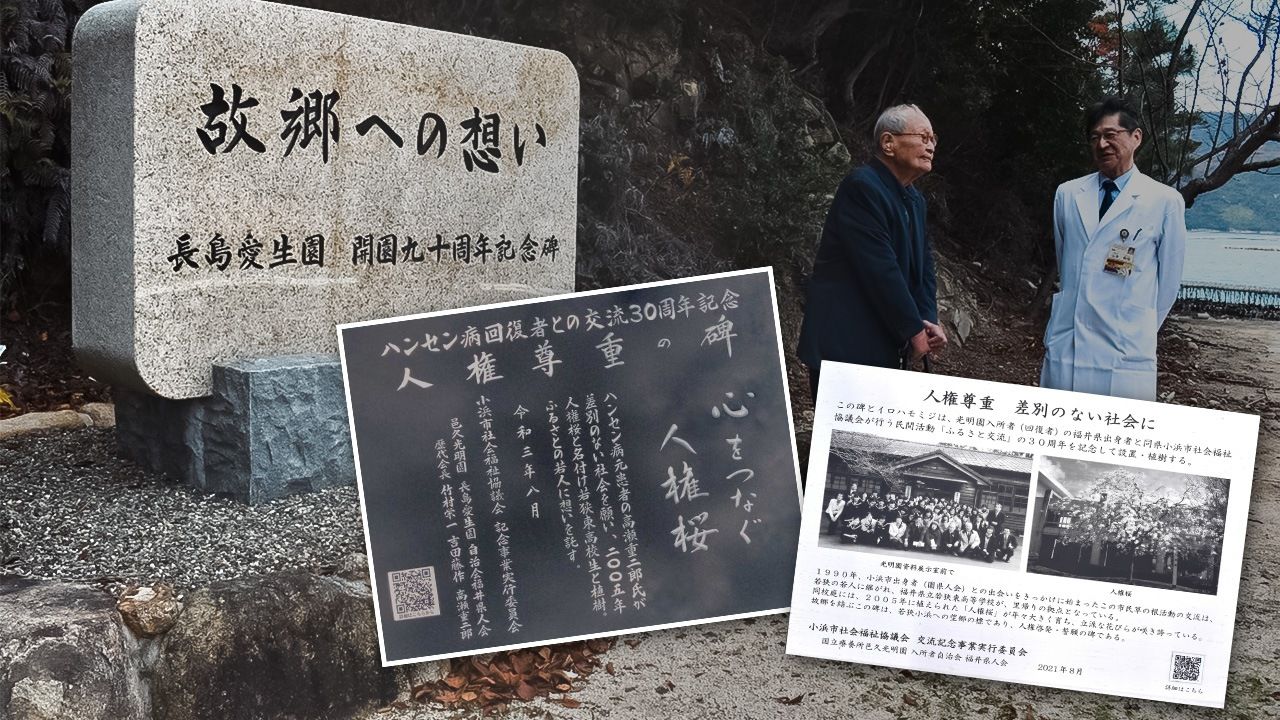 標題圖片:由左開始是設立在長島愛生園、若狹東高中、邑久光明園的石碑和標示牌。