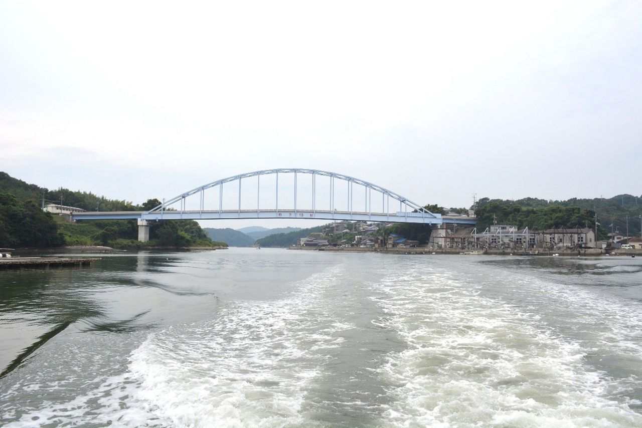 連接長島(左側)與本土的邑久長島大橋,通稱「回歸人類之橋」。兩岸距離最短處不到30公尺,在1988年之前,海峽兩岸並未架橋,人們被迫與社會隔絕