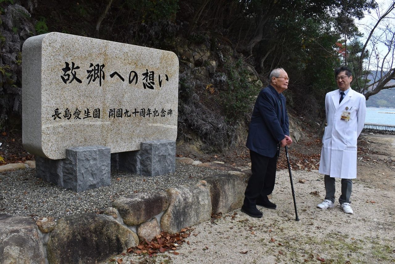 長島愛生園也在2021年6月建立「開園90週年紀念碑」。上頭銘刻的字是「對故鄉的思念」。立碑處的旁邊就是「收容棧橋」。這裡是過去一旦從此處登島,就無法再回到故鄉的地方。該園入所者自治會會長中尾伸治先生(90歲)形容這裡是「截斷與故鄉聯繫的場所。是個寂寥之處」。但他認為這裡也是反省的場所。