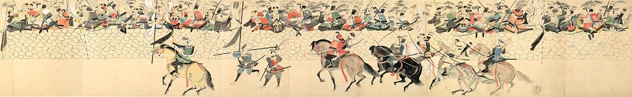 (*1) ^ 《蒙古襲來繪詞》是參加與元作戰的肥後國御家人竹崎季長,請畫師把自身驍勇作戰的英姿製成繪巻,也附上「文字記錄」。雖然有意向幕府討戰功報酬,多少有添油加醋的部份,但是該繪卷具有同時代性,史料價值高,被指定為國寶。