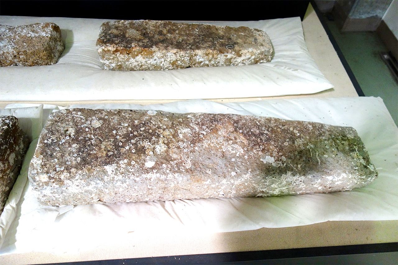 最大的碇石重量1個就超過170公斤。「木頭部分遭到蛀船蟲啃食而消失不見,大多是只有碇石留在海底。到目前為止,就發現了36根碇石。」