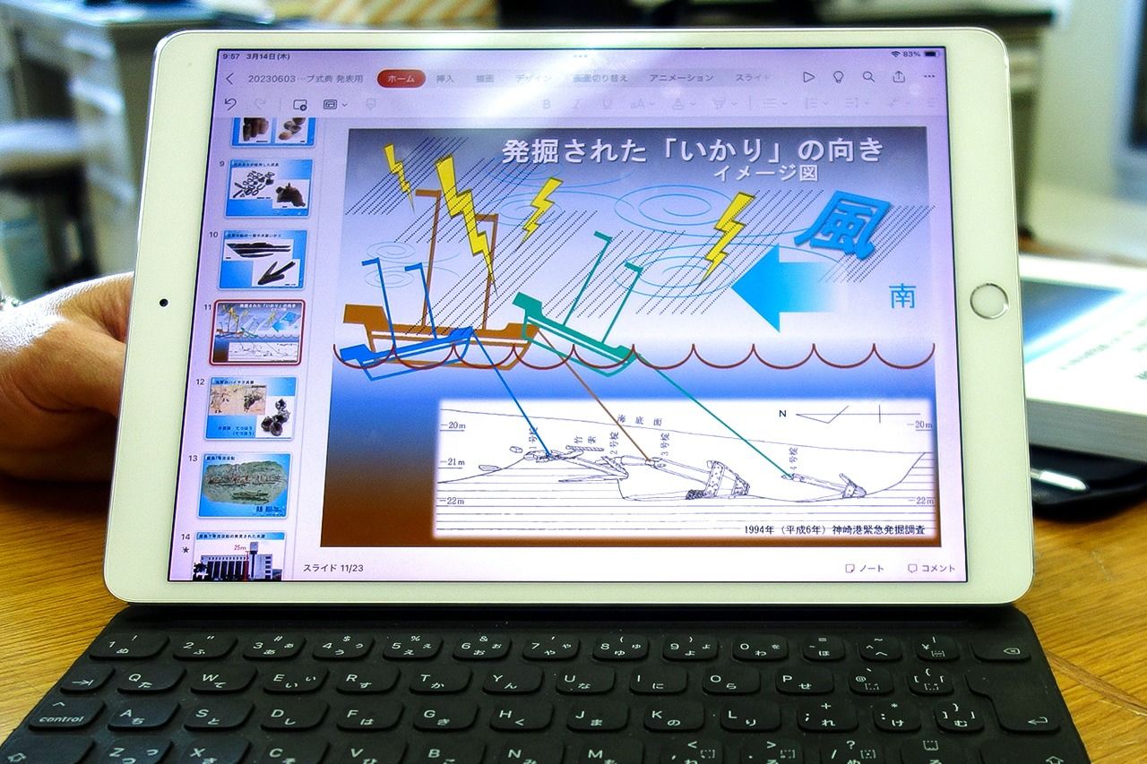 「當初設想了海底可能堆積很多沉船,但怎麼找也找不到,因為暴露在海水裡的木製船被蛀船蟲啃食光了。」長年參與鷹島外海的海底發掘調査,現任國學院大學研究開發推進機構的教授池田榮史如此說道。