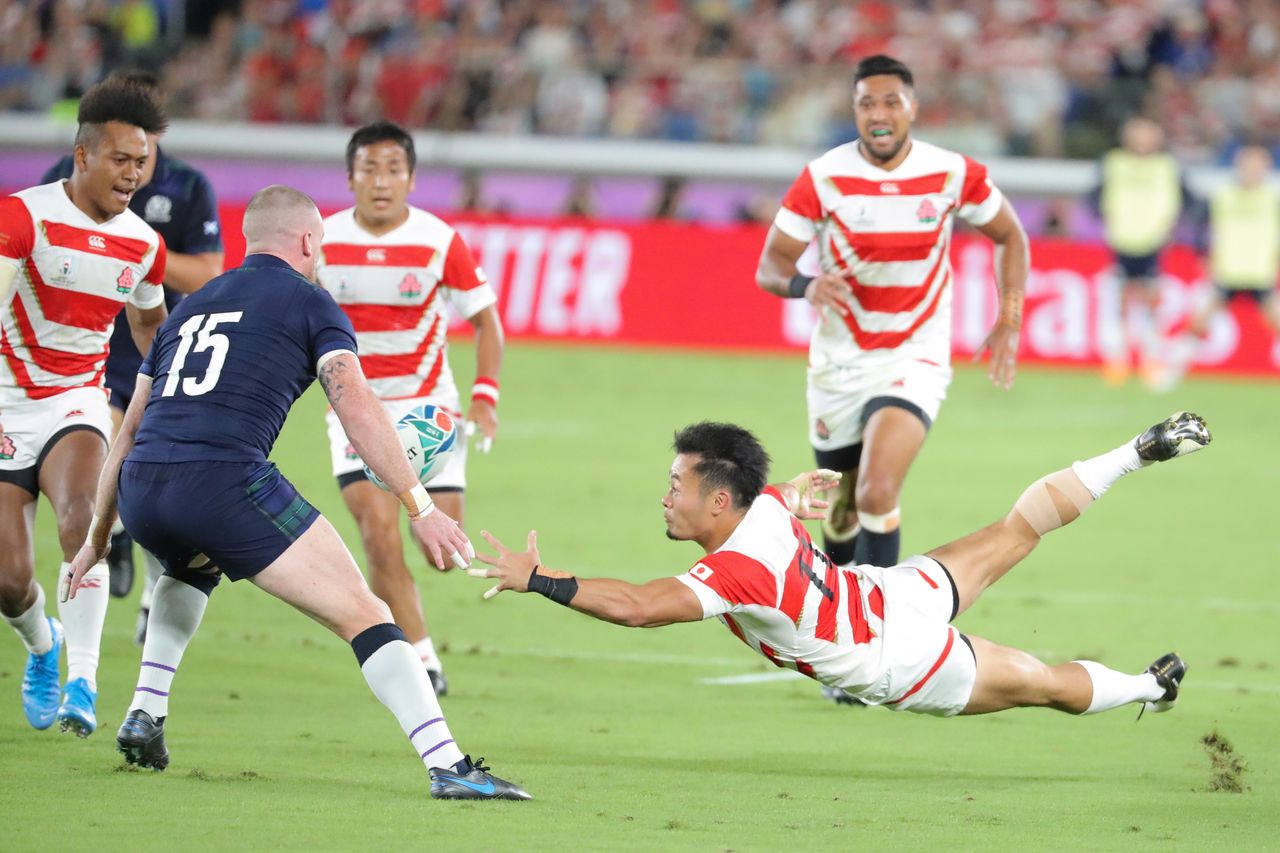(標題圖片:戰勝蘇格蘭的瞬間,爆出歡呼的日本隊選手們(2019年10月13日,橫濱國際綜合競技場,時事通信社))