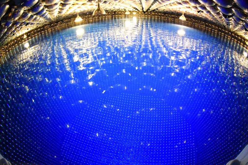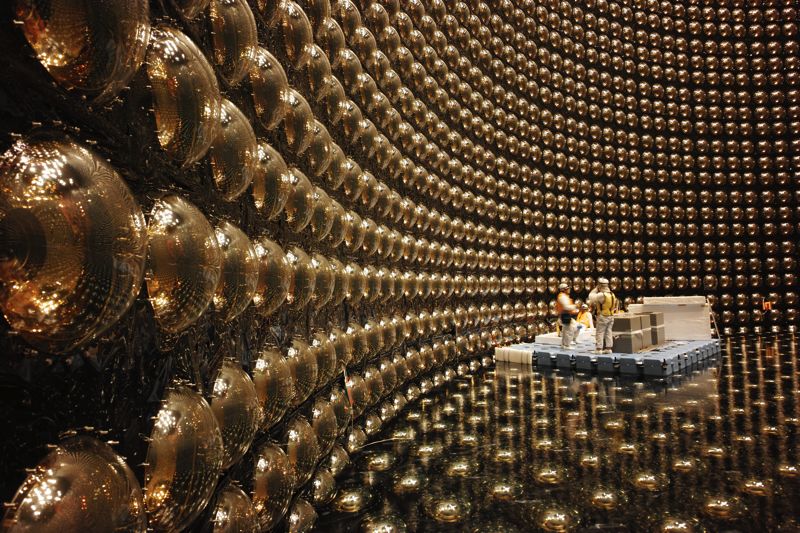 水箱的內壁上佈滿了11129個直徑50公分的巨大燈泡狀的光電倍增管(光電感測器)。每一個光電倍增管的靈敏度都極高,甚至可以探測到從月球表面照射過來的手電筒的光線。光電倍增管的玻璃是由吹制玻璃的工匠精心打造成型的,表面塗有一層金屬膜,像金子一樣閃閃發光(除了維修期間,其內部被籠罩在黑暗之中,無法看到排列整齊的1萬多個金球)。