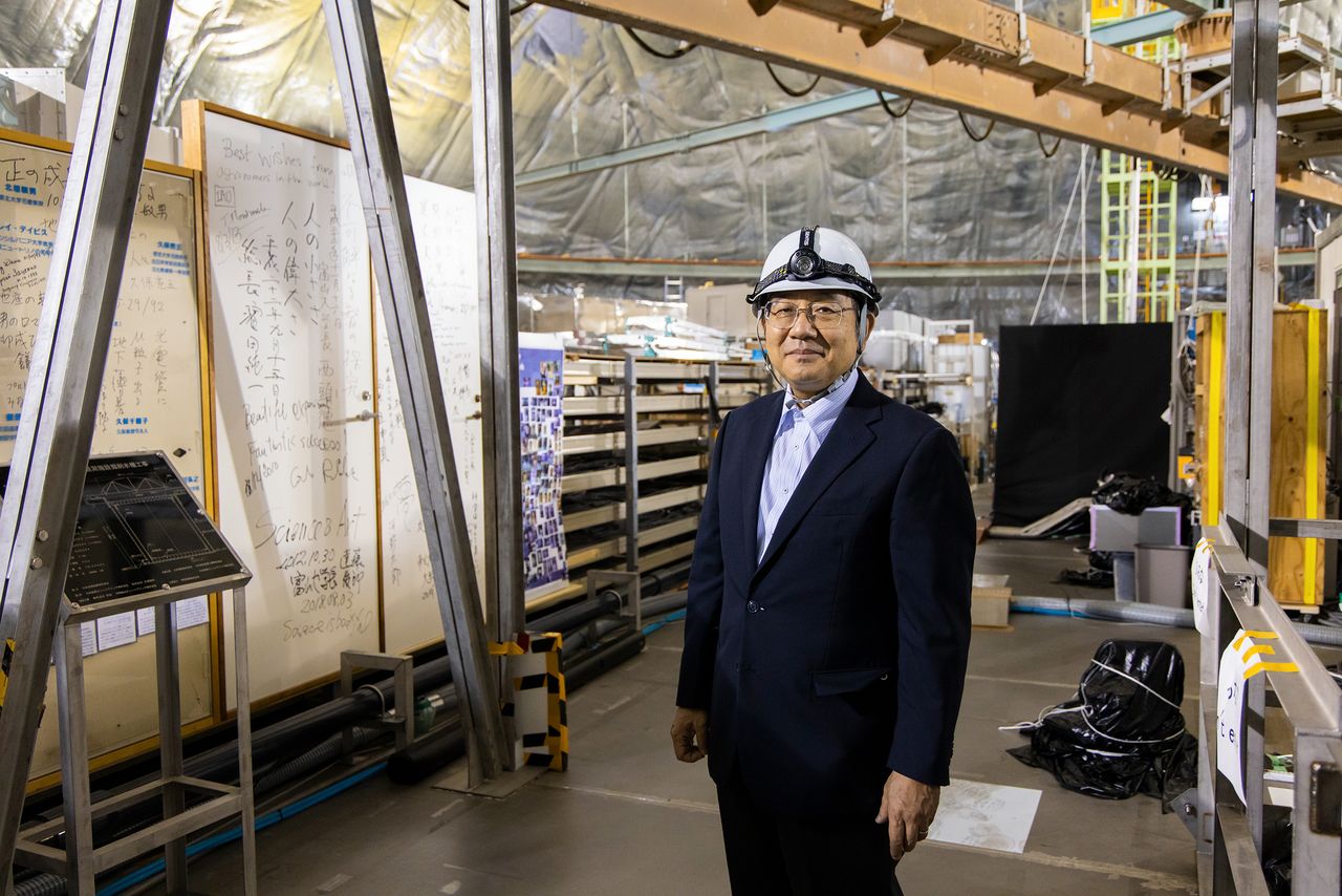 中畑教授說話溫文爾雅(東京大學宇宙線研究所 神岡宇宙素粒子研究設施內)