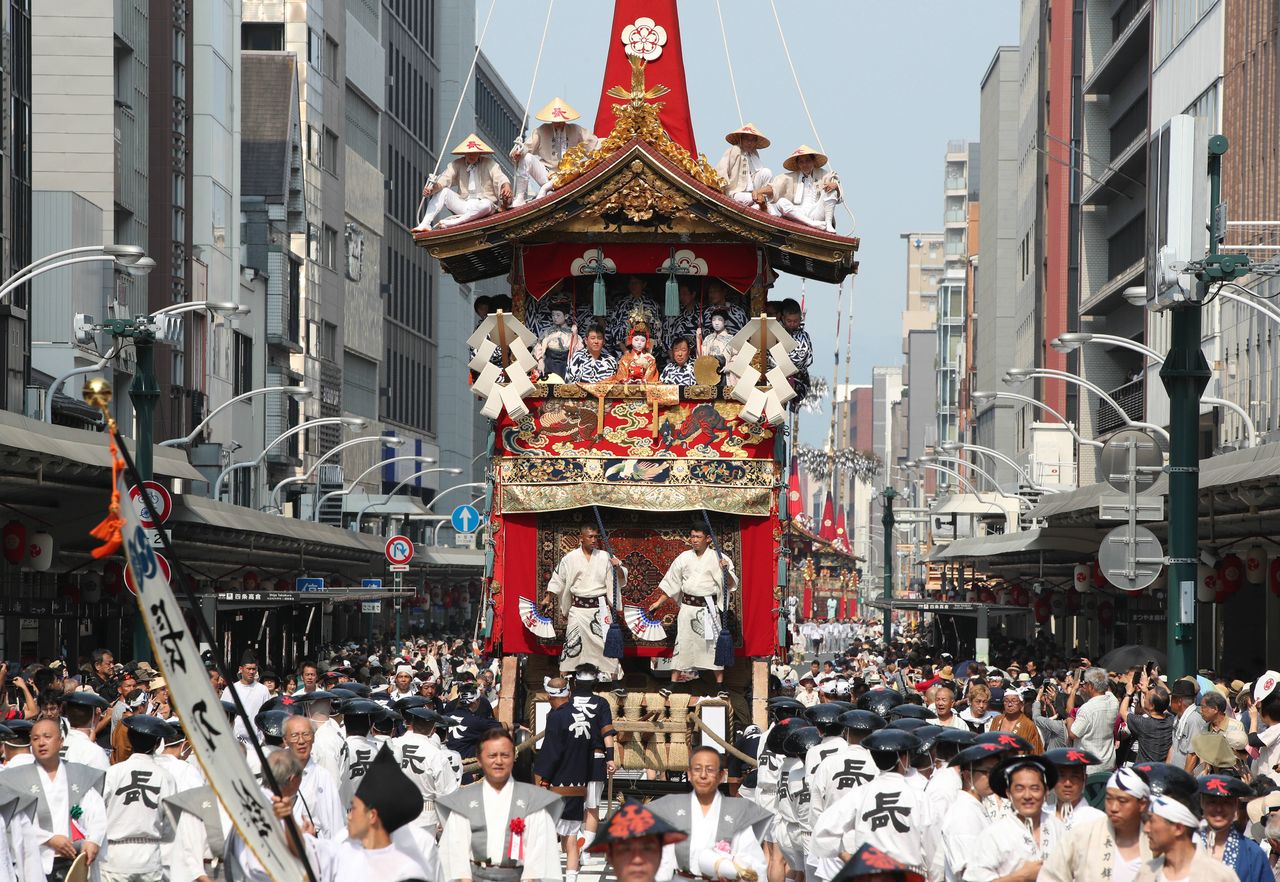 京都夏季風物詩——祗園祭的山鉾巡遊,京都市下京區,2018年拍攝(時事)