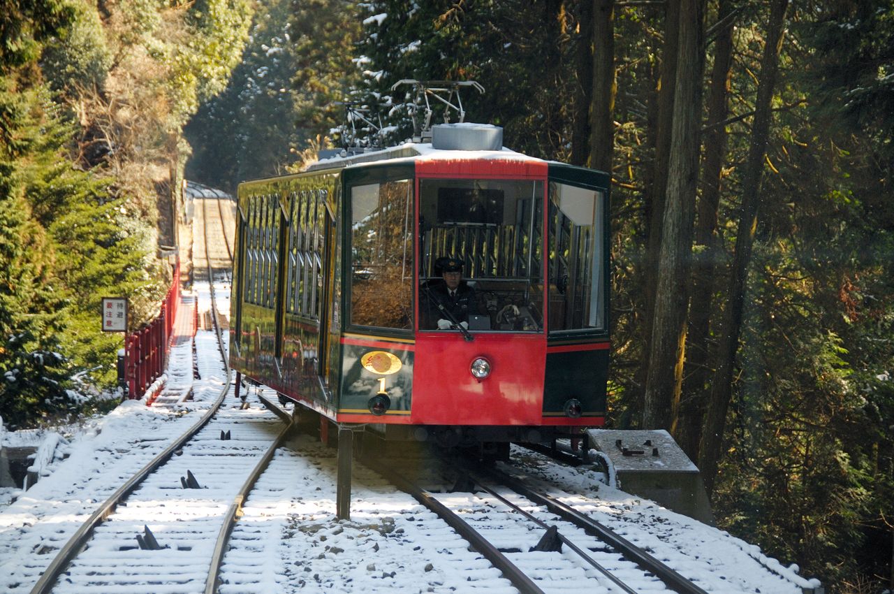 連接山腳下滋賀縣大津市和比叡山山頂的比叡山阪本鋼索鐵路,2009年拍攝(時事)