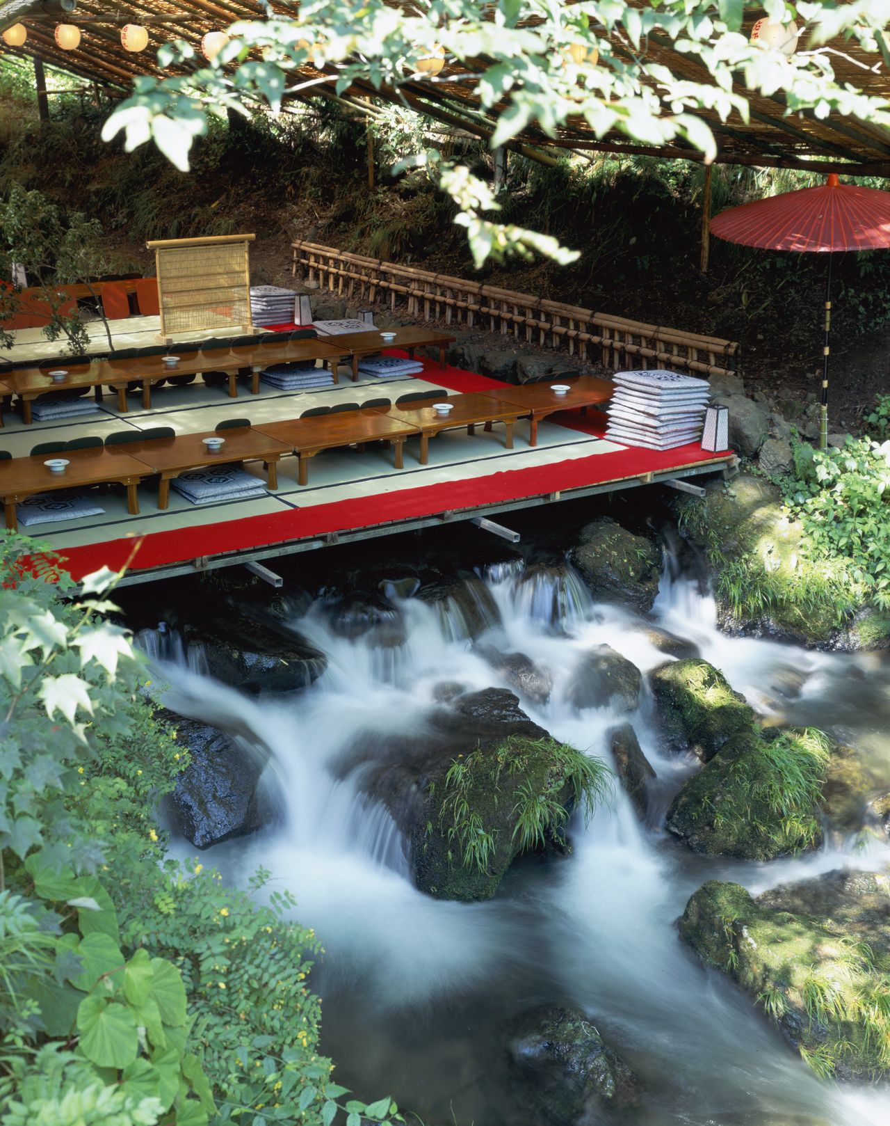 設在貴船川上的納涼露臺。可以一邊欣賞清冽的溪流,一邊享用「京料理」 ,京都市左京區,2009年拍攝(時事)