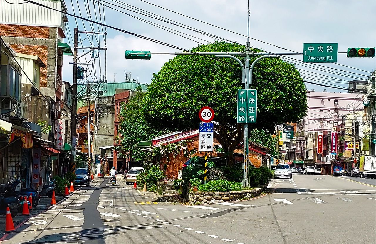 康莊路與中央路的Y字路,左方中央路歷史悠久,在1898年日本時代的地圖上便已存在
