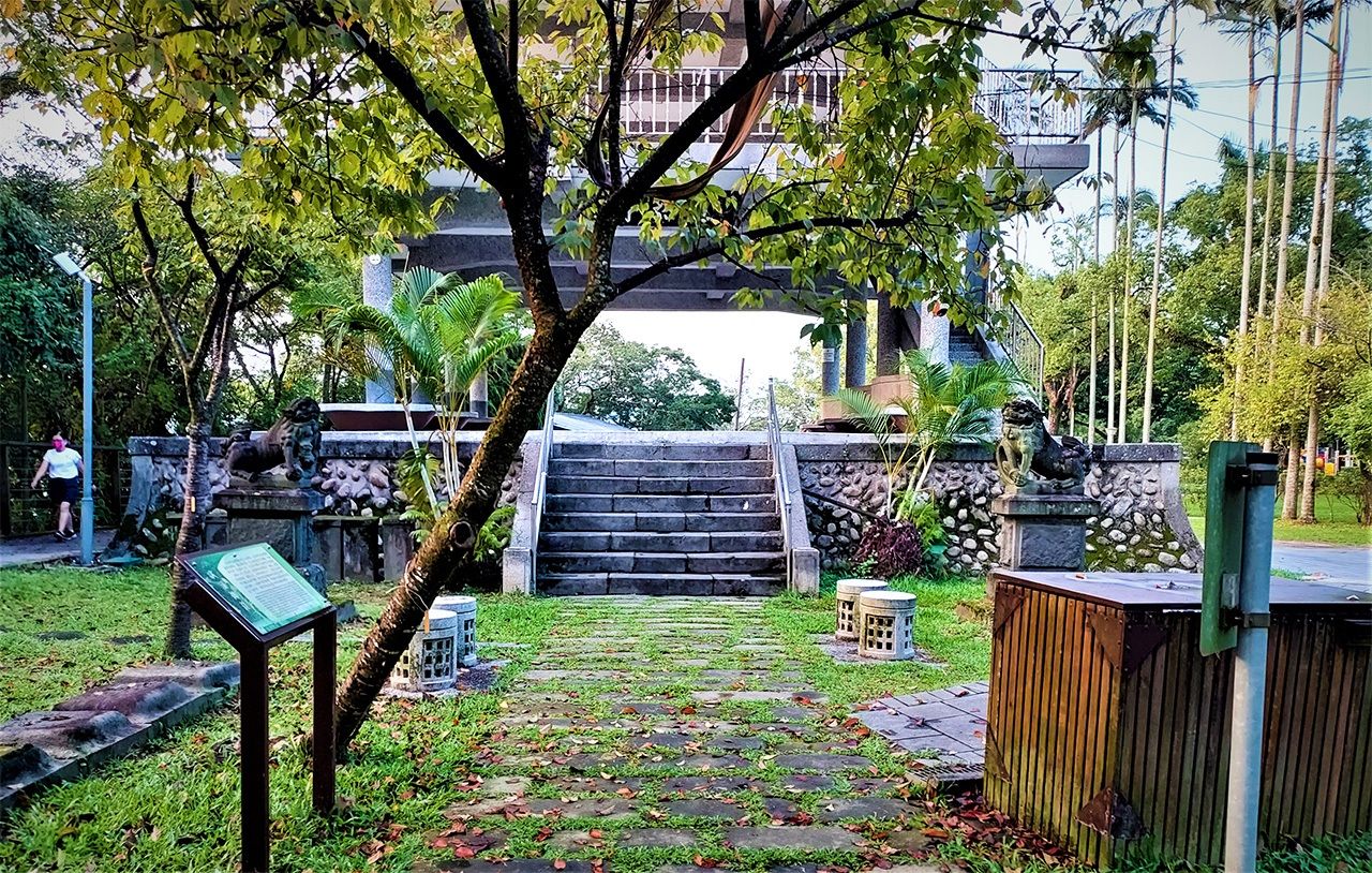 我們來到曾是大溪神社的中正公園,此時,上集裡登場過的鄉土史家黃建義騎著機車出現了。