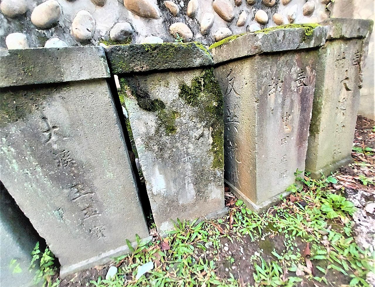 那是製造於大正2年(1913年)的基石,以及排在以往大溪神社拜殿樓梯旁的供奉石柱,石柱上刻著「昭和七年十月建立 石川縣人」,側面卻刻著「反共抗俄」。