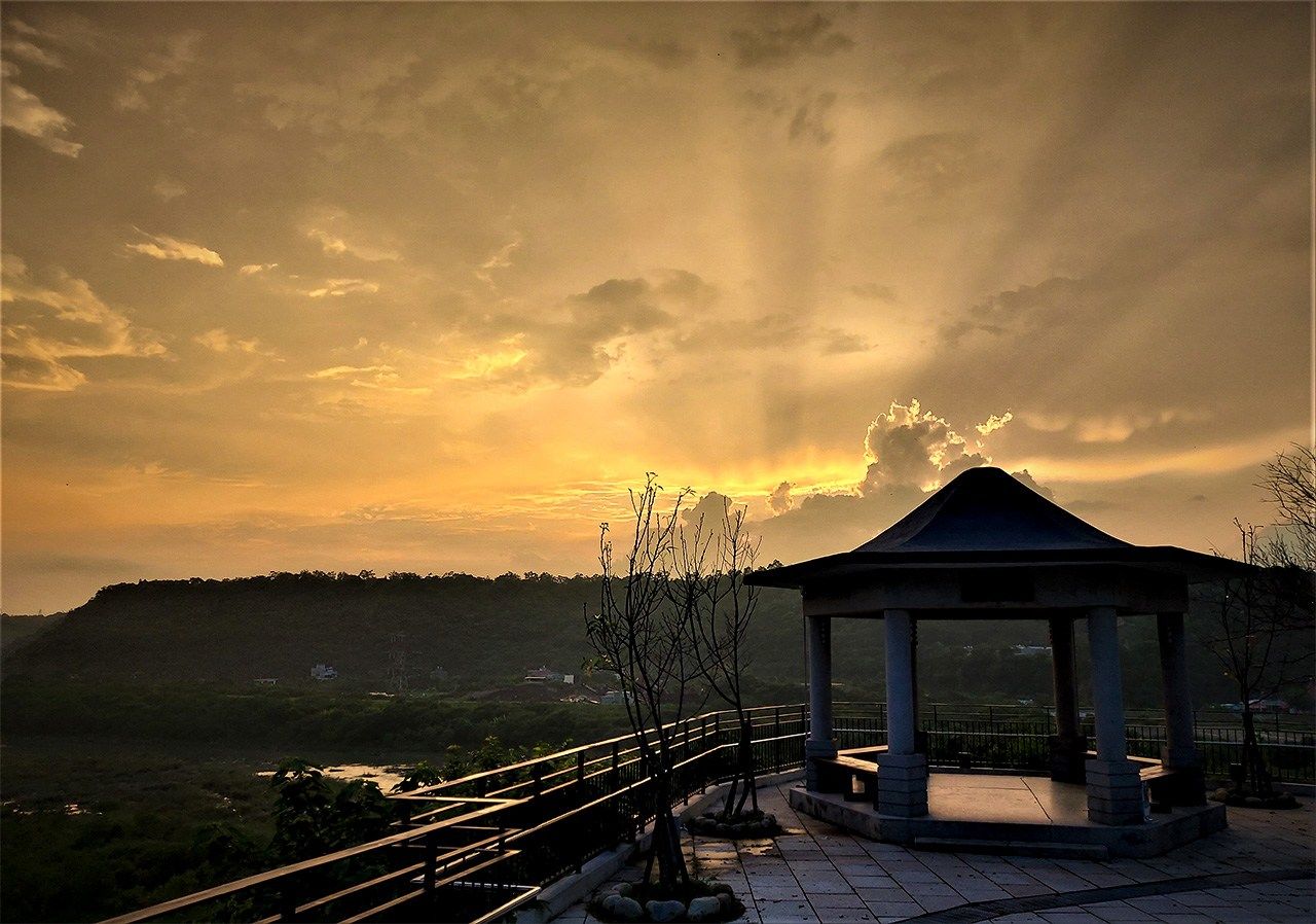 從涼亭「志清亭」俯瞰大漢溪。大漢溪因河川侵蝕作用,分成三層,第一層是農地,第二層是城鎮