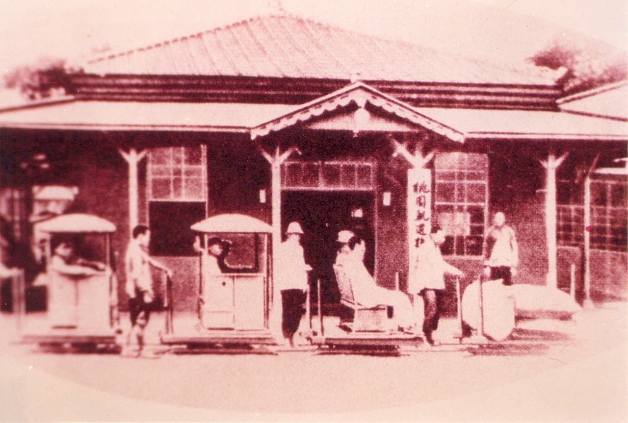 「桃崁輕便鐵道會社」所攝之當年的臺車軌道車站(照片:桃園汽車客運授權)