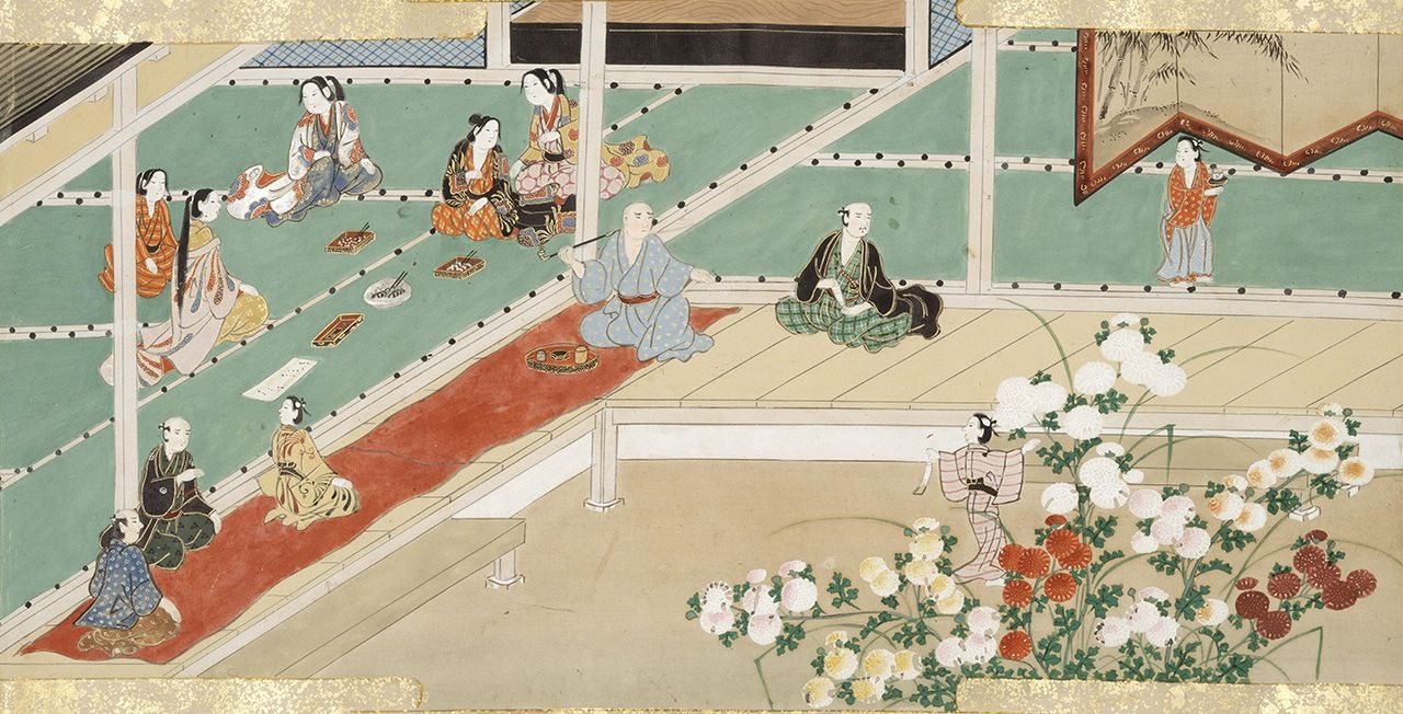 「上巳(桃花節)」「端午」「七夕」等節日還深深紮根于現代生活之中,但9月9日的「重陽」早已不見蹤影。在過去,這一天人們會祈禱無病息災,喝菊花酒(《十二月游》,國立國會圖書館藏)