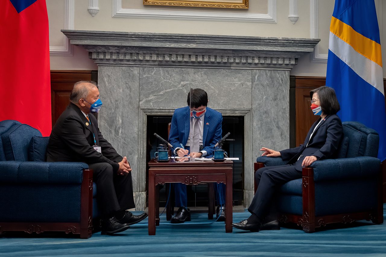 除了線上交流,台灣的實體外交交流仍不可少,圖為蔡英文總統與馬紹爾共和國總統柯布亞會談。
