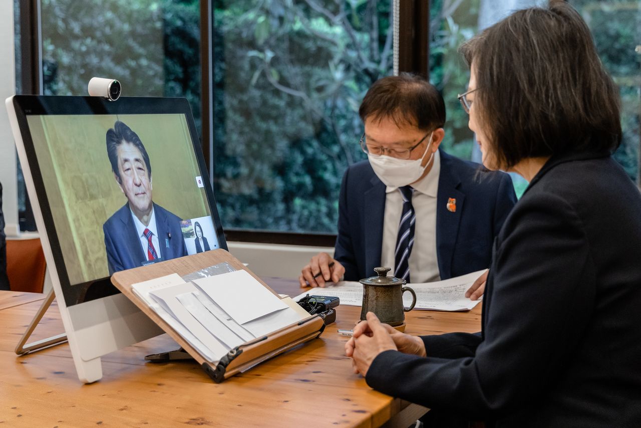 標題圖片:近兩年的疫情,台灣藉由數位科技運用大力拓展數位外交,與各國建立共同價值觀的良好夥伴關係。圖為蔡英文總統與日本前首相安倍晉三線上會談。