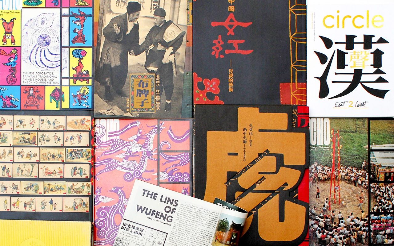 漢聲巷所企劃製作的一小部分書籍。照片中央呈現卷捆狀的是70年代草創期製作的英文雜誌《ECHO》,該雜誌以全英文的方式介紹中華文化,部分過期雜誌有庫存可以購買。