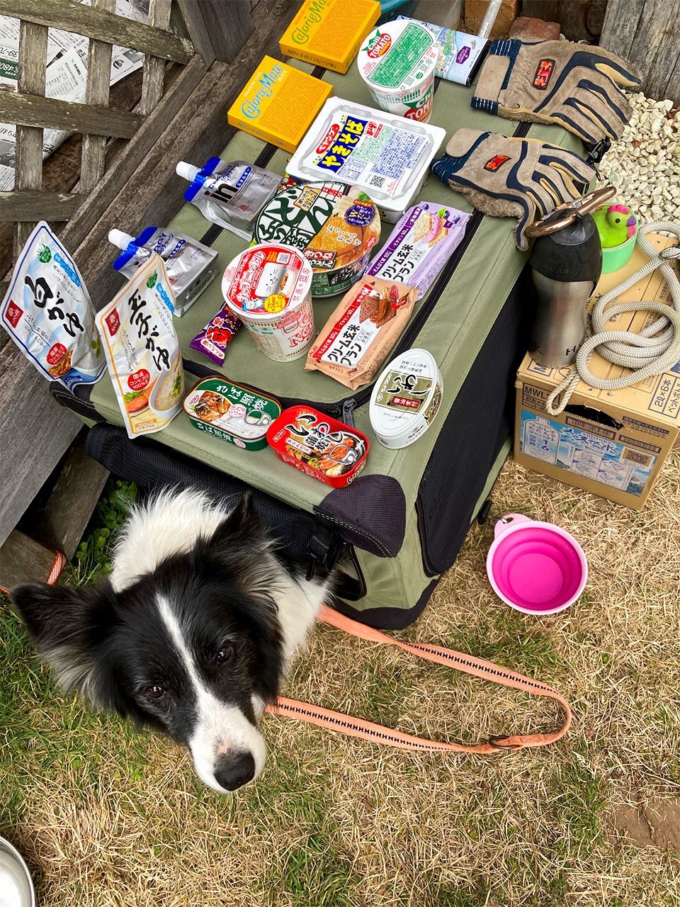 狗狗的食宿部分,我們準備了四天份的狗糧、水、零食、球類玩具、厚墊、排泄物清潔袋和吸尿墊等。因為前往珠洲的路程相當遙遠,不論是人還是動物,都必須獲得妥善休息及處理排泄物問題。除了個人裝備外,團隊也攜帶無線對講機、繩索與白板等。