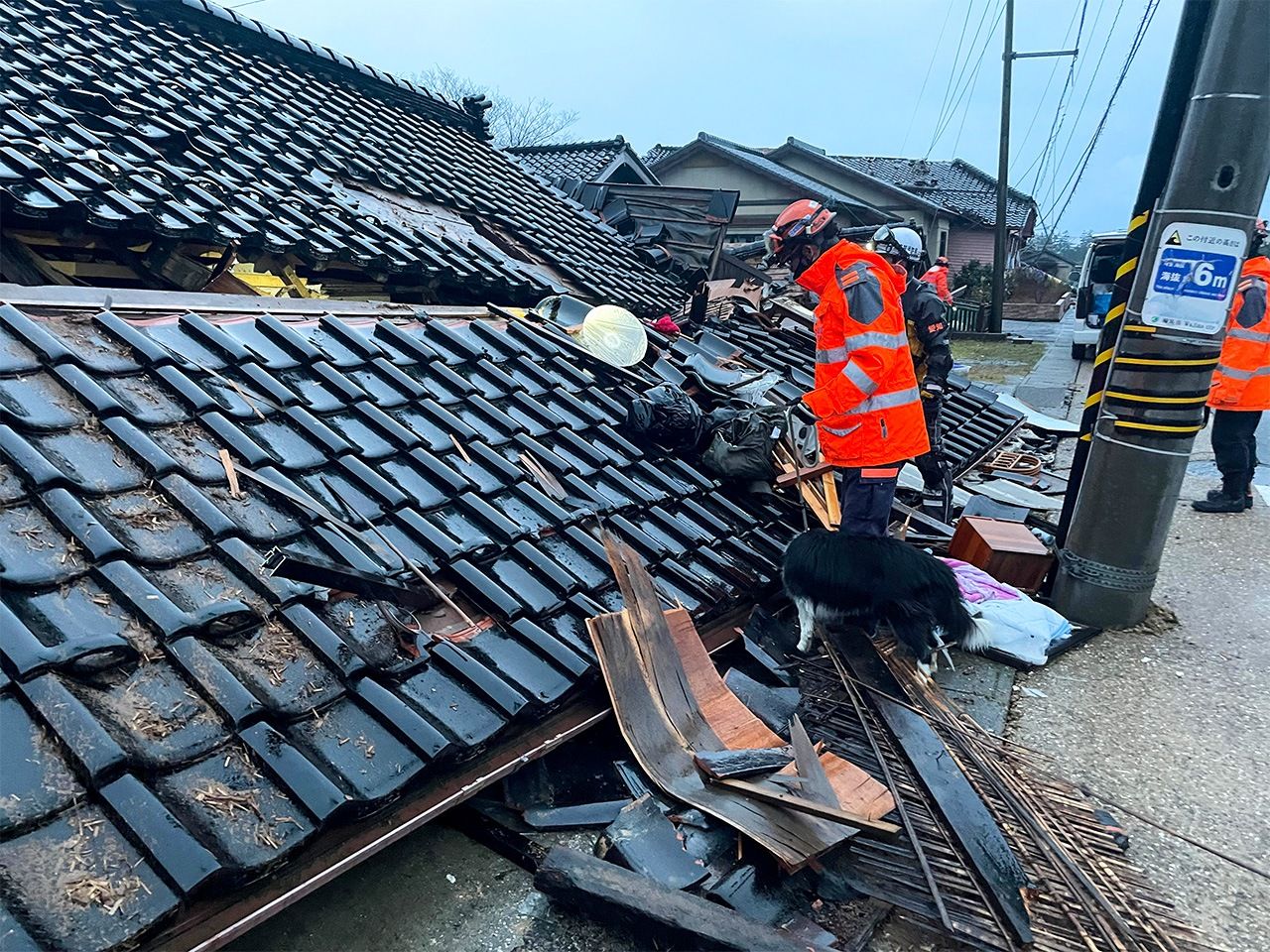 這天是首次地震過後兩天,志工團體「NPO法人日本搜救犬協會」(以下簡稱協會)的能登行動小組在金澤市內下高速公路,沿著海岸公路前往輪島。結構鬆軟的地面再度塌陷可能是3日上午的餘震所造成的。我們無法預知何時何地會再發生什麼樣的二次災害,讓我再次體認到在災區行動是多麼地困難。