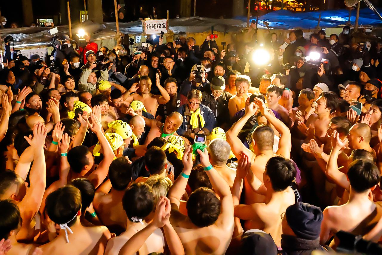 接獲蘇民祭告終的消息,前來參與的裸男高於往年,達270人,媒體一窩蜂前來,多達400人。