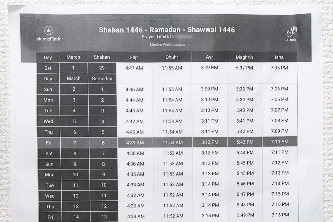 由於齋月日期由伊斯蘭曆決定,因此每年的日期有所不同,有時在夏季,有時則在冬季。2025年的齋月從3月2日開始,到3月31日結束。禁食開始與結束的時間以及每日的禱告時間都隨太陽運行軌跡精確到分鐘。