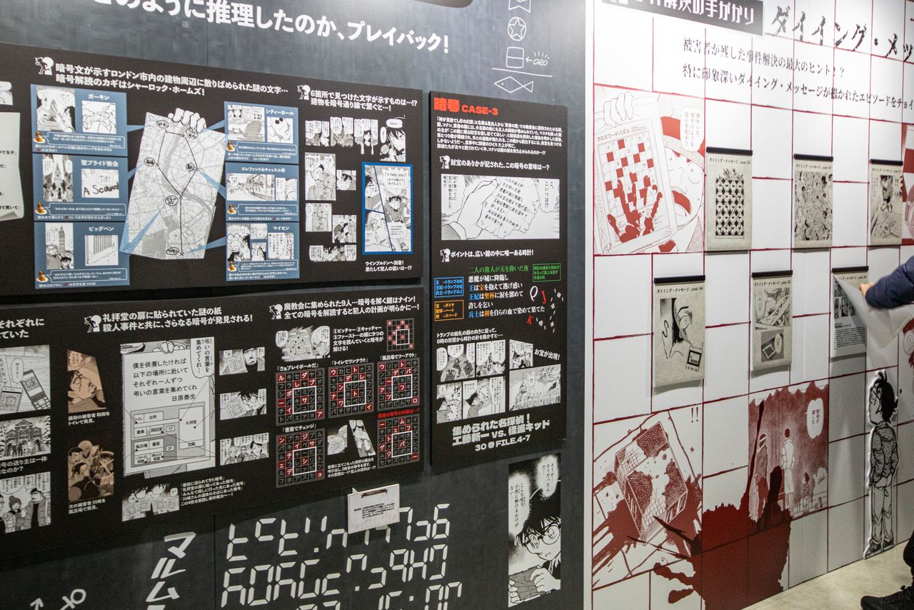 展示區聚焦在作品的魅力,由六個主題組成,有解謎、戀愛情景,以及富有個性的犯人等。從主要角色的初期設定,到回顧一路走過三十年的特別影片,有許多只能在這裡看見的珍貴資料。這個展覽會從東京會場開始,然後巡迴福岡、札幌、仙台、大阪、廣島、橫濱、名古屋等地。