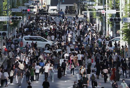 緊急事態宣言全面解除後,睽違約半年重新再開的銀座步行者天國=2日、東京都中央區