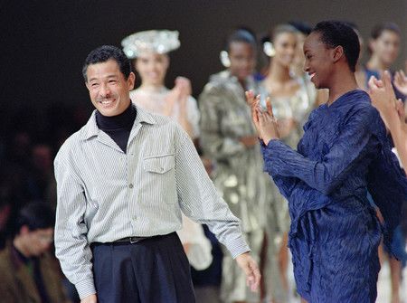 三宅一生當年在巴黎展示他的春夏系列後獲得掌聲=1991年10月(AFP時事)