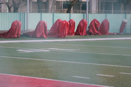 零散的日本大學美式足球俱樂部球場=29日下午、東京都世田谷區