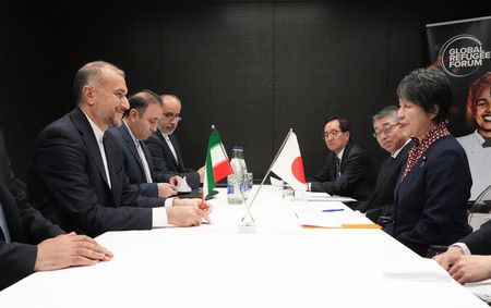 日本外相上川陽子會見伊朗外交部長=要求其與胡塞武裝組織接觸
