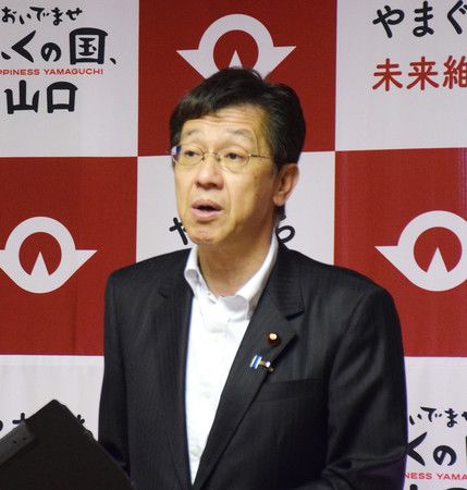 在向山口縣解釋了美國海軍魚鷹部署到岩國空軍基地的情況後,松本尚防衛政務官回答記者詢問=15日下午、山口市