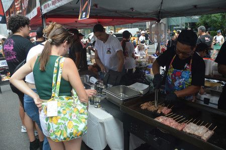 一位購買和牛烤串,來自新澤西州23歲女士笑著說:「這是我第一次吃和牛,出乎意料的嫩,味道很鮮美。」