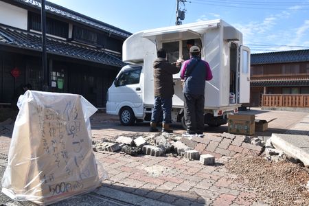 一輛廚房餐車,替參與復健支援的工作人員們提供販賣餐點=1月31日、石川縣輪島市