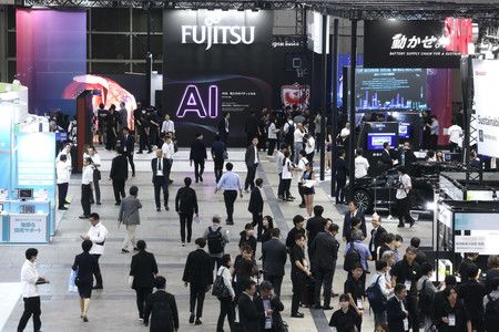 開幕的國際展覽「CEATEC 2024」=15日上午、千葉市幕張展覽館