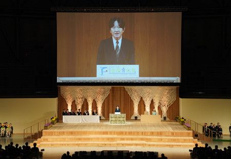 秋篠宮親王在第47屆全國育樹祭儀式上致辭=20日上午、福井縣越前市的SUN DOME福井