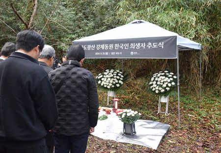 針對被登錄為世界文化遺產的新潟縣佐渡市的「佐渡島金山」,韓國政府在25日上午在位於新潟縣佐渡市的「第四相愛寮」遺跡上舉辦其獨特的追悼儀式。包括駐日本大使朴喆熙和9名家屬等共約30人在現場默哀獻花。