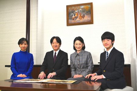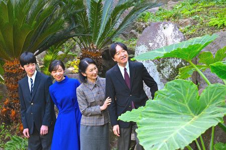 在秋筱宮親王59歲生日之前,和他的妻子、次女佳子內親王以及長子悠仁親王在宮邸合影留念=11月3日、東京都港區的赤坂御用地(宮内廳提供)