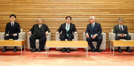 內閣官房長官林芳正等人出席內閣會議(中央)=10日上午、首相官邸